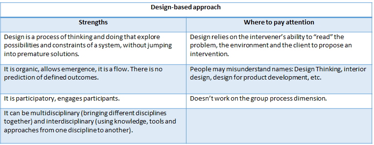 A way to explore this (dis)encounter of OD and Design Thinking: when an OD consultant comes to an organization to help in an organization development issue, he/she will “design” an intervention using OD tools and approaches. At this point, design is a method and not a field of knowledge. In what ways can this consultant work on organization development using Design Thinking?